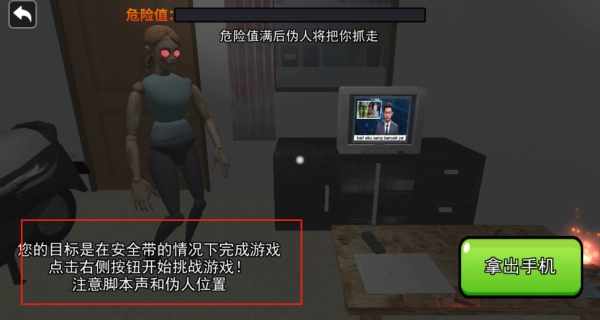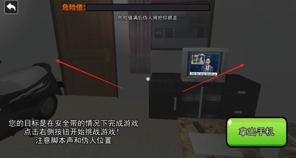 然后最基础的操作就是直接点击并且旋转屏幕,就可以切换视角,查看伪人是否在附近,然偶拿出手机。