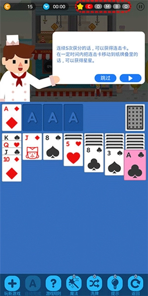 连续5次得分就能拿到连击卡,要是及时把它移到目标区就能获得星星。