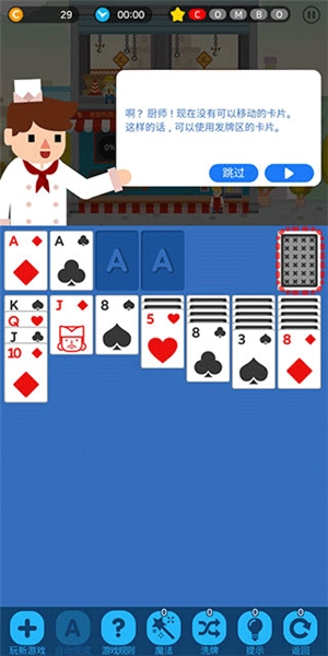 当无牌可移动时,善用右上角发牌区的储备牌。