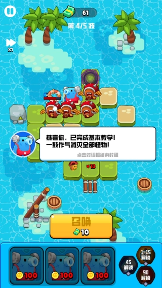 成功挡住一波敌人后,一般能得到临时强化的选择或额外的能量,用来接着召唤和合成,就这样循环操作直到打败关卡最后的BOSS,取得胜利。