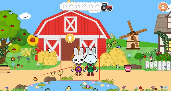 点击农场里的小兔子,不仅能和它们嬉戏玩耍,还能观赏到谷仓旁的各类小动物与植物。