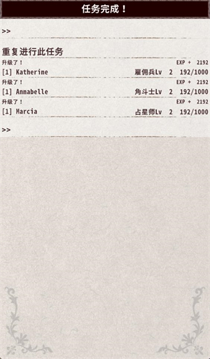 任务带有等级,已通关的任务可反复挑战。即使全灭,除游戏中期登场的护符”外,不会有装备丢失或金币减少等惩罚,因此请大胆尝试。