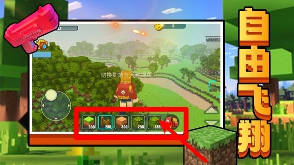 2. 下方的快捷栏能够预先设置常用的方块道具,无论是飞行过程中还是探索时,都可以快速进行建造操作,从而提升操作效率,同时也能增强创作自由度的体验。
