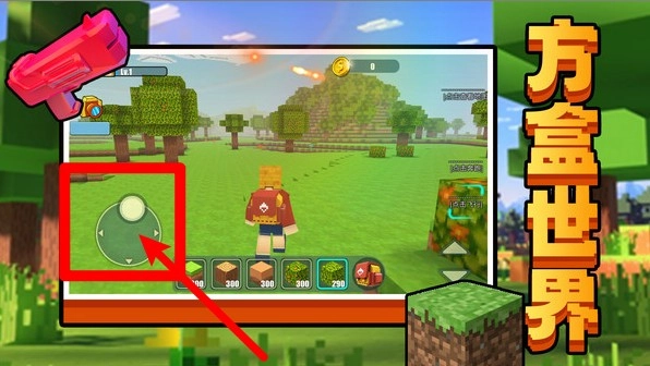 3. 左下角的虚拟摇杆用于操控角色移动方向,搭配右侧按钮可实现跳跃与飞行,助你在方盒世界里自在穿梭、毫无束缚。