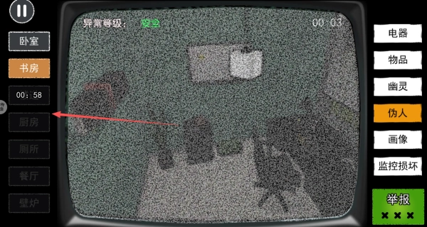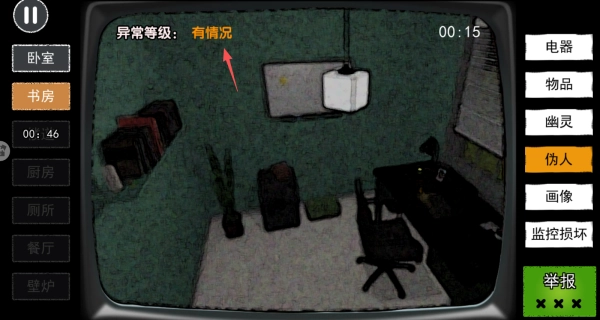 进入游戏后,查看各个房间的监控画面,要是察觉到任何异常情况,就能够进行举报操作。