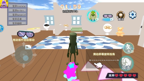 角色会随机变成场景里的物品,这让游戏多了些不确定性和新鲜感,每次玩都能有不一样的体验。
