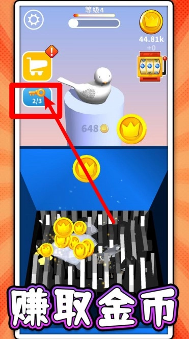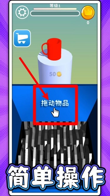 3. 拖动物品进行粉碎操作:点击“拖动物品”区域,将物品拖拽至下方的粉碎机中,物品粉碎成功后,即可获取金币与升级经验。
