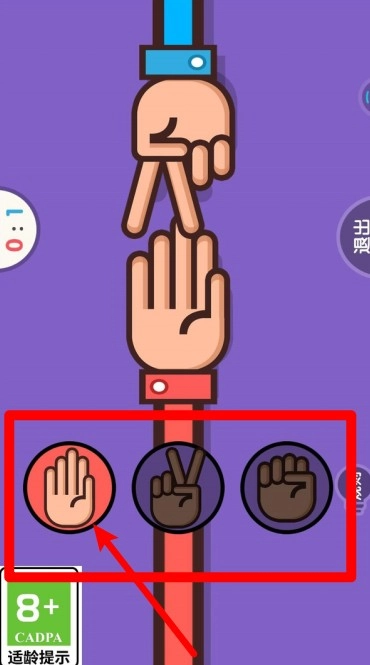 2. 剪刀石头布的选择规则:在进行出拳对决时,玩家需要点击底部的图标来选定手势,只要出拳正确就能获胜并开启下一轮的挑战。