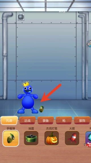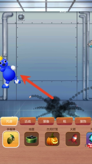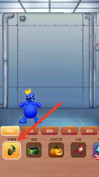 点击选中的玩具后会进入互动界面,你可以用手指在屏幕上进行各种操作,比如选择手雷道具,将其扔到人物角色身旁,尽情地“虐”他吧!