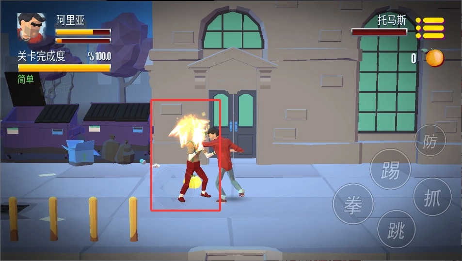 2、点击右侧按钮可发动拳脚攻击,快速双击该按钮则能触发跳跃飞踢,合理组合这些招式可打出更高伤害。