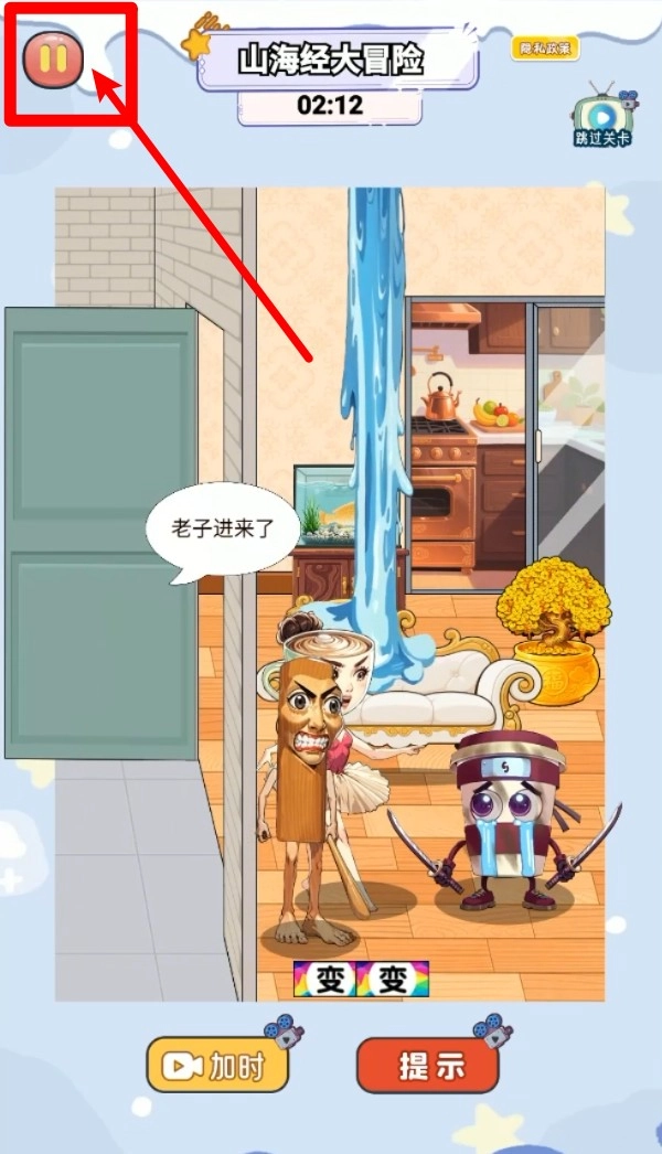 1.左上角暂停按钮可随时中断当前关卡流程,适合需要临时离开时点击暂停,保持当前游戏状态不变。
