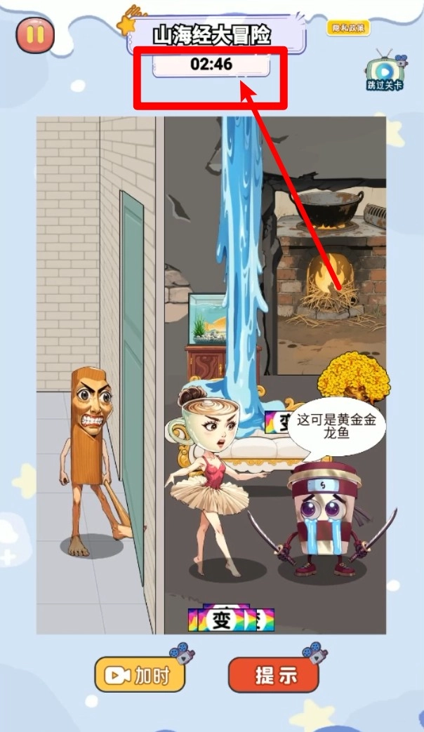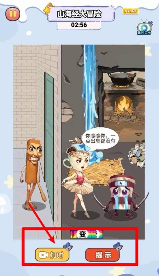 3.底部加时与提示按钮可通过观看视频获取帮助,加时用于延长解题时间,提示则直接给予解谜方向。