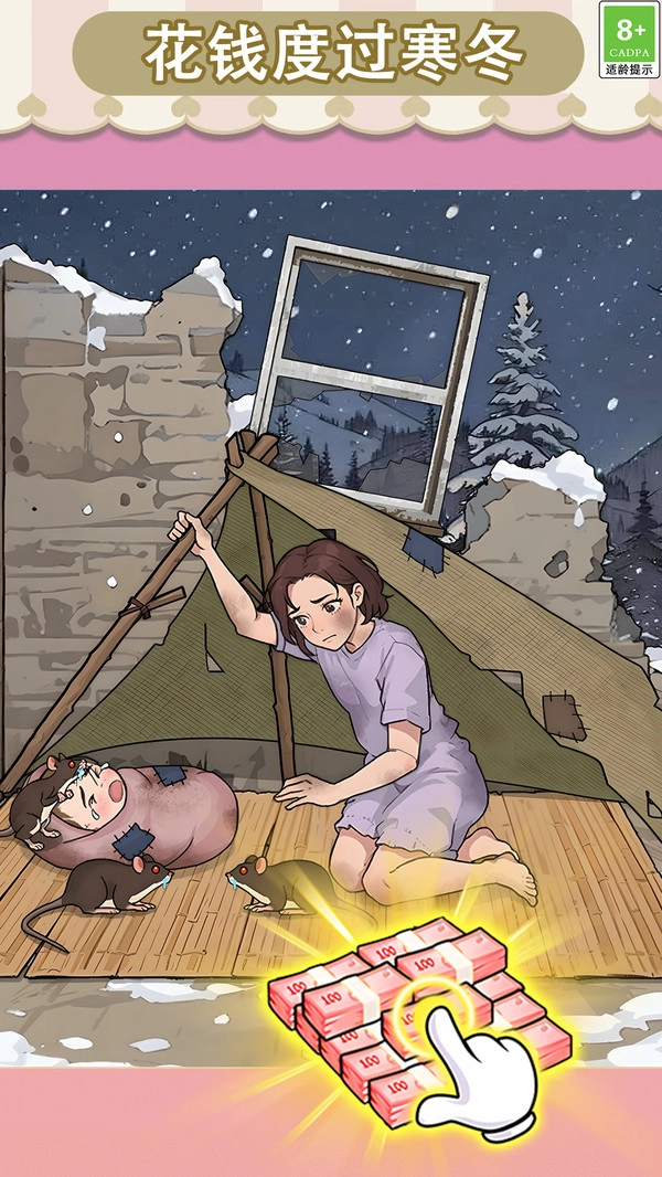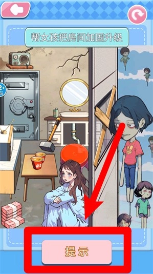 2. 女孩被困在破旧的屋子里,环境压抑得让人喘不过气,点击提示寻找关键线索,帮助她摆脱困境,让生活有所改善。
