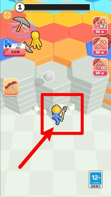2. 点击屏幕即可操控角色挥动镐头开采矿石,在此过程中进度条会不断累积,助力角色提升等级、提高挖矿效率,让你尽享畅快的挖矿乐趣。