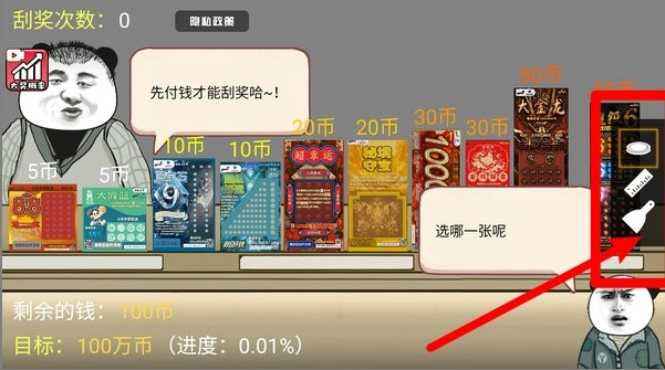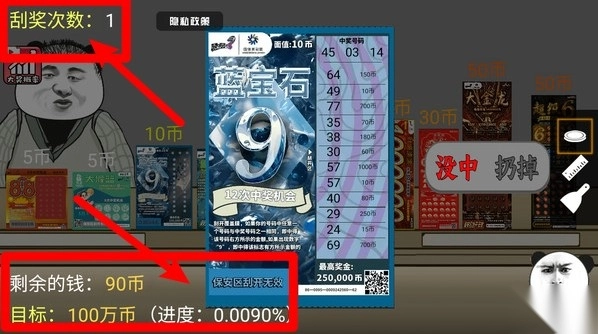 3. 画面上方会展示当前还剩下的刮奖次数,左下角则显示玩家目前拥有的金币数量以及需要达成的目标金额,这样能让玩家随时了解自己的进度和资源情况。