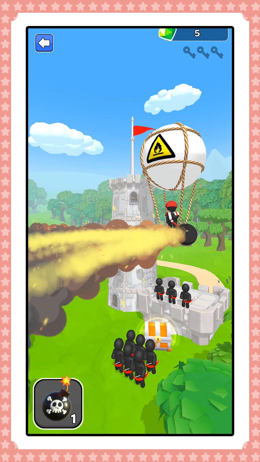 快乐小人射击是一款非常刺激的射击游戏,玩家将参与城堡攻防战,需要用弓箭精准消灭敌人、攻占对方城堡,合理掌控射击回合,准确瞄准目标,在箭战对抗中一边守护一边出击,感受策略与射击相结合的战斗乐趣。