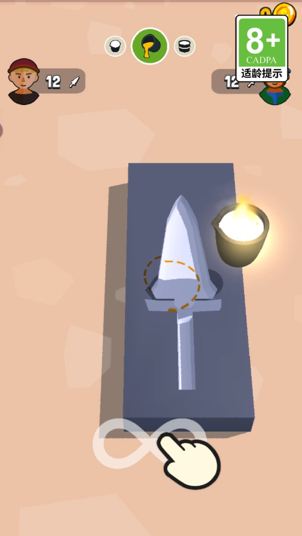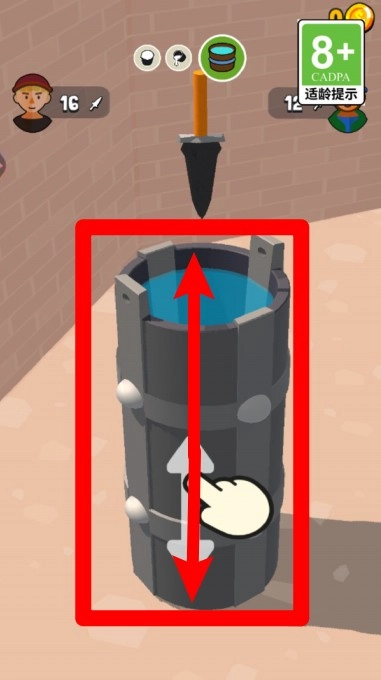 2.冷却阶段中,拖动箭头将水桶上下移动,帮助锻造的武器快速冷却完成。