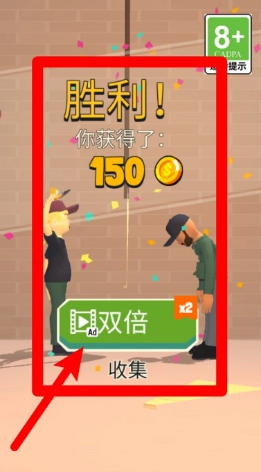 3.完成任务后,画面会弹出奖励结算页面,玩家可快速领取金币奖励。