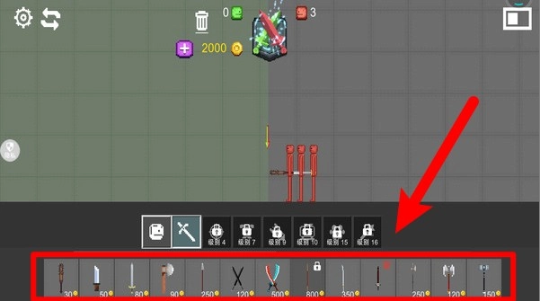 2. 点击下方工具栏,从中挑选各类武器与道具,通过搭配运用构建出策略性的组合。