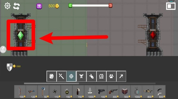 3.点击塔楼左侧的绿色宝石,查看其剩余耐久度,及时修复防御设施以增强持久力。