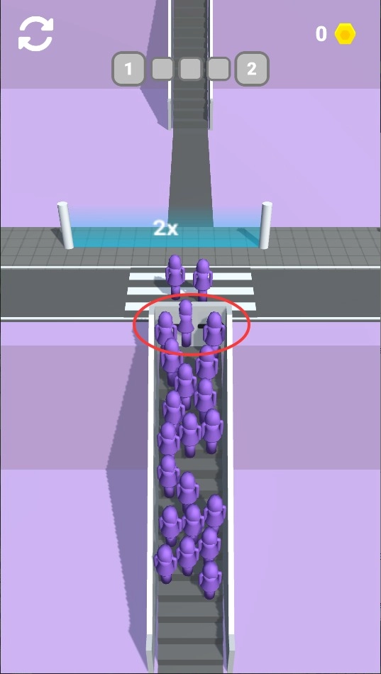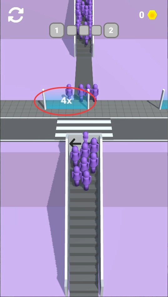 1、魔性人流控制:玩家需要引导密密麻麻的小人通过扶梯,看着人群像潮水般移动特别解压。人群碰撞物理效果做得相当逼真。