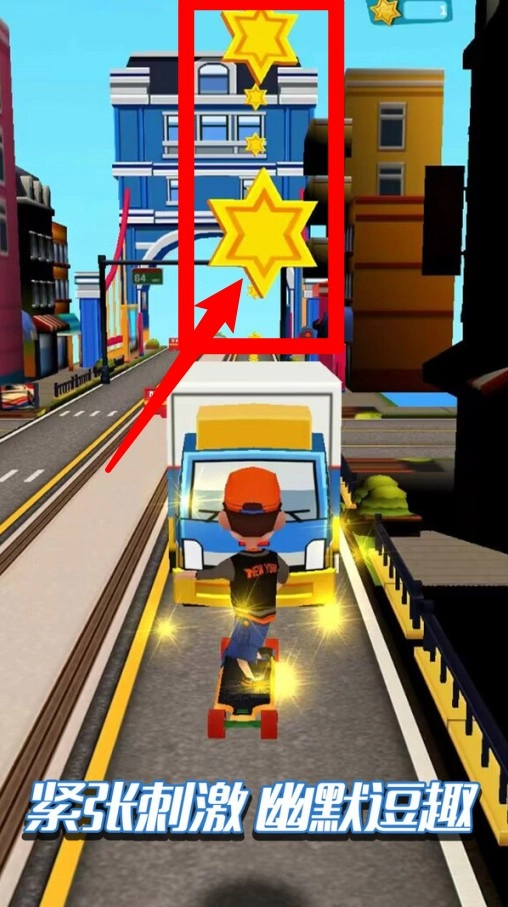 3.收集金币道具:跑道上散落着金币,通过滑动切换跑道拾取金币,可提升得分收益。
