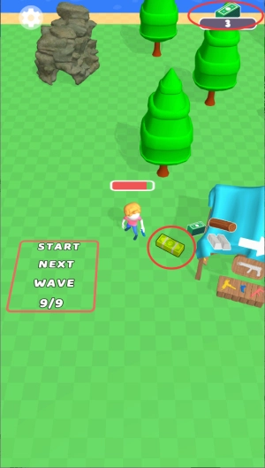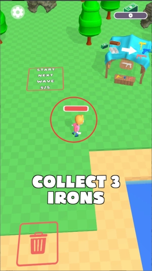 1、用手指滑动屏幕来操控角色移动,在小岛的各个地方进行探索,收集金币、零件等关键道具,以此提升自身的战斗能力。