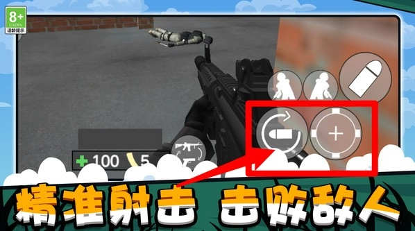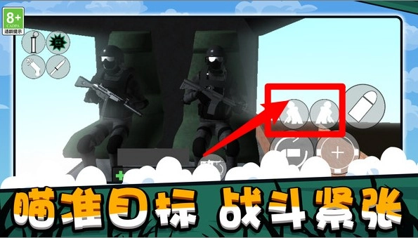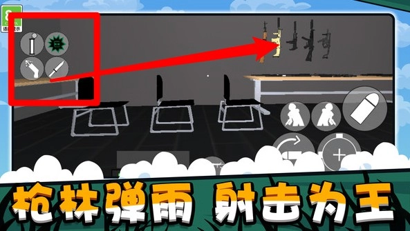 3. 攻击与射击操作:界面右下角的子弹形状图标是射击按钮,点击该按钮就能发射子弹,瞄准目标需要玩家手动调整游戏视角。