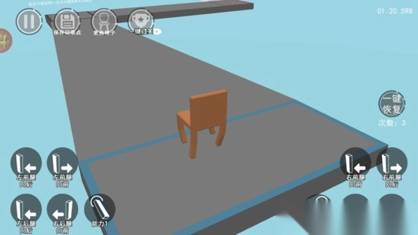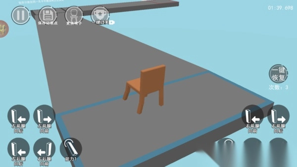 移动机制:玩家要分别操控椅子的四条腿来达成移动。每条腿都能独立操作,借助左右移动来把控椅子的行进方向。玩家需灵活调整每条腿的位置,让椅子得以平稳地向前奔跑。
