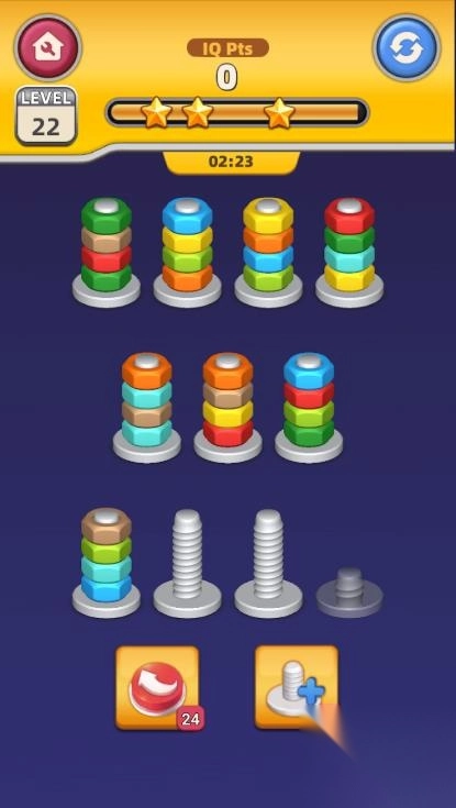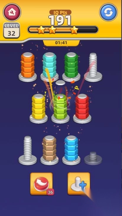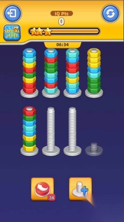 转动金属螺杆,把上面色彩各异的坚果按照颜色进行分类。2、每完成一次分类,就能得到对应的汽车零件。3、利用收集来的零件对车身、轮胎、内饰等多个部分进行修复。