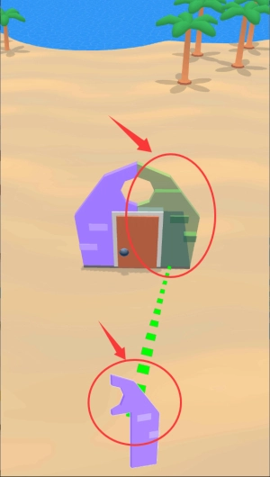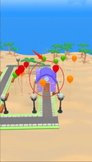 1、滑动屏幕调整发射角度,抛物线轨迹会实时显示落点位置——绿色标识代表可建造区域,红色则意味着需要重新瞄准。瞄准的精准度越高,能获得的分数奖励就越丰厚。