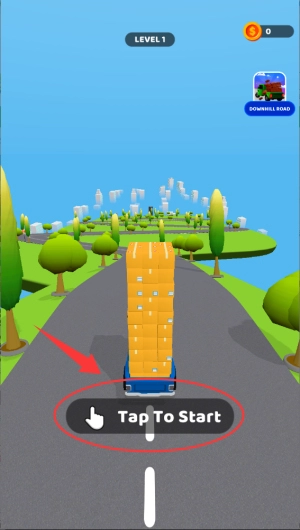 1、轻触屏幕启动引擎,车辆随即开始下坡行驶,需留意把控方向,避开沿途的障碍物与急转弯道。