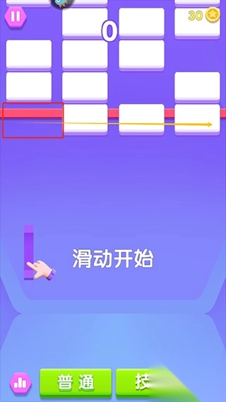 玩家需在屏幕上滑动操作,把砖块移至行列的空白位置,以此消除第一列的砖块。