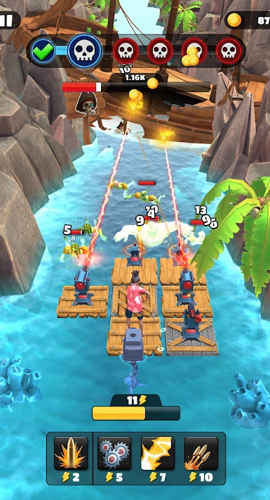 木筏防御是一款别具一格的水上生存游戏,玩家化身幸存者,在僵尸横行的世界里,仅凭一叶木筏于汹涌大海上漂流求生。游戏中,你既要抵御从各处袭来的僵尸,还得应对变化多端的海洋环境——无论是狂风巨浪的海域,还是风平浪静的河流,每种水域都潜藏着各异的危险与挑战。想要活下去,就得收集资源、搭建防御设施,并且灵活借助身边所有可用之物,来抵挡僵尸一波接一波的进攻。
