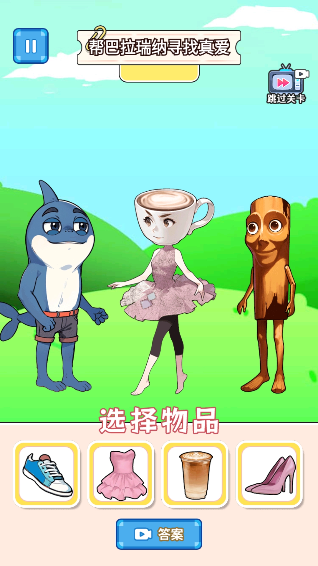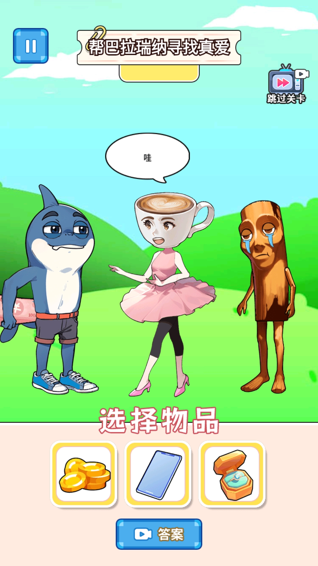 第三关以浪漫为主题,选择戒指道具,就能触发甜蜜剧情,助力鲨鱼人顺利完成告白。
