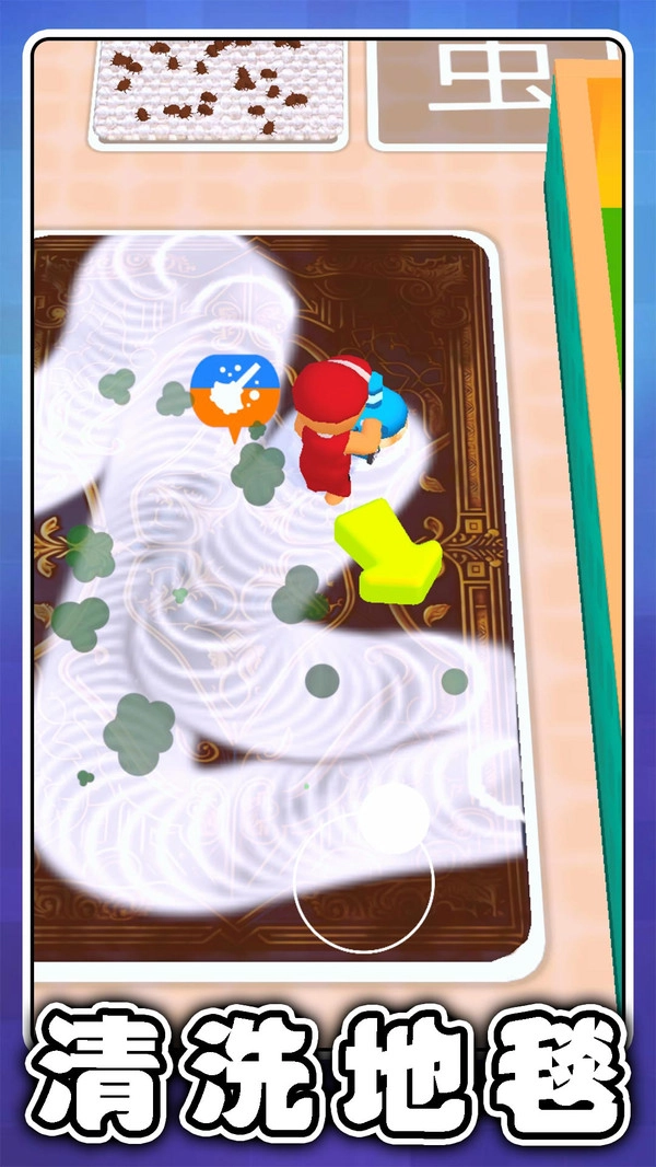 操作十分简便,新手也能快速上手。只需点击污渍所在的位置,角色便会使用对应的清洁工具开展清洁工作;要是长按屏幕,还能启动该工具的特殊功能。