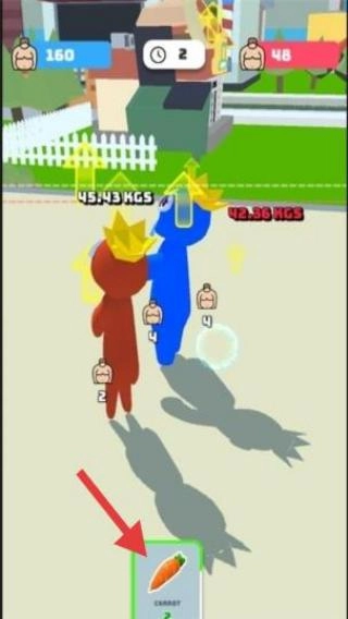 在游戏界面里,按照箭头所指的方向,点击下方的“胡萝卜”图标,这一操作或许是为了获取资源或者推动游戏进程。