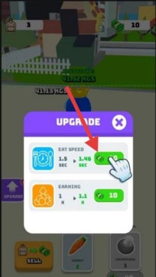 点击“UPGRADE”界面里的“EATSPEED”升级按钮,就能提升进食速度这一属性,不过需要消耗对应的资源。