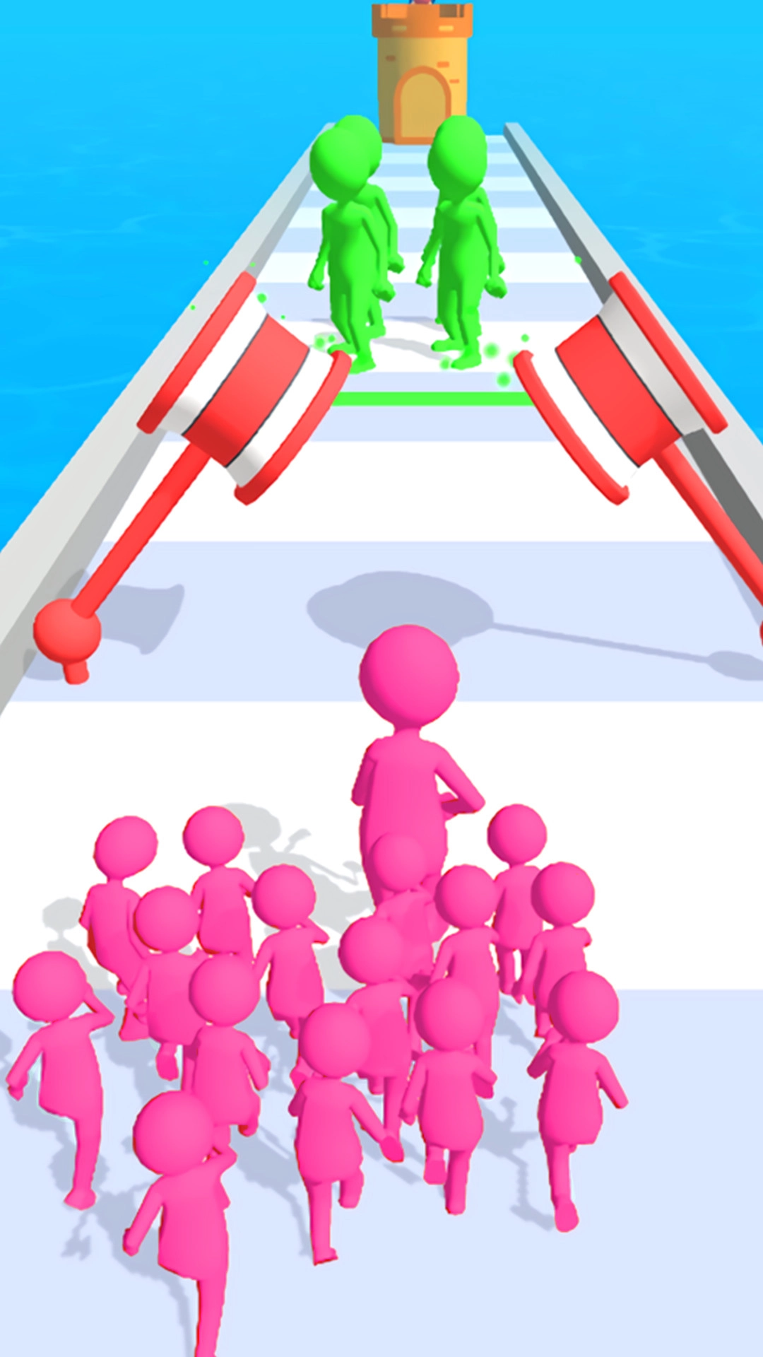 玩家能够通过滑动手指操控小人,使其与相同颜色的小人合并,以此来快速壮大自己的队伍。