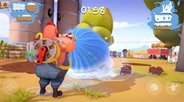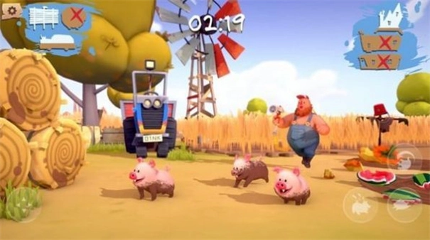 1、小猪与农场工人在农场里展开竞技,充满各种挑战