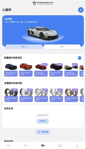 2、点击3D配置可以选择车辆来改装,点击打开就可以进入模拟界面。