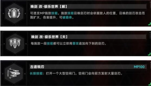 天与古剑搭配时,能一次性开启两个空间门;而解的组合则能让古剑实现蓄力发射。但要留意的是,若你在蓄力过程中被击飞,或是被冲刺动作打断了蓄力状态,此时技能不会成功释放,MP却依然会被消耗。不过,要是没有搭配蓄力相关的潜能组合,古剑的蓄力即便被打断,也不会出现MP被吞噬的情况。