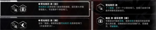 4、三段跳跃和荧光利刃组合后,空中跳跃会生成一个仅发射一次剑刃的空间门。但因为这个组合只能触发一次剑刃发射,所以我觉得它娱乐性大于实用性,输出方面不如常规攻击来得实在。