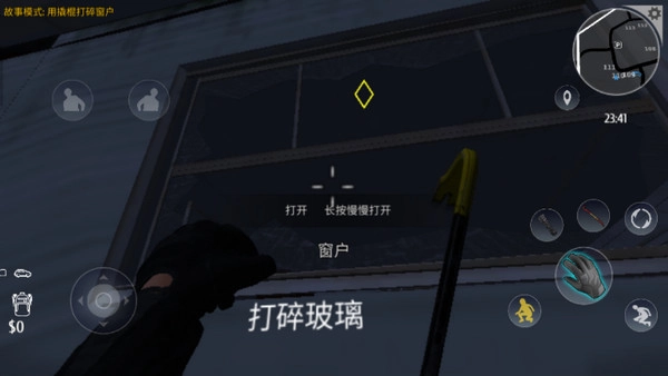 6、继续向前,走到阳台下用撬棍把窗户打破即可进入房子