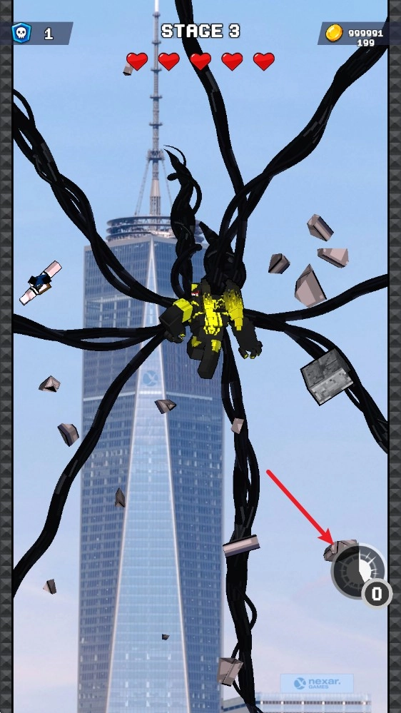 1、进入游戏后,拖动屏幕就会出现红色的箭头,可以控制毒液的跳跃方向。