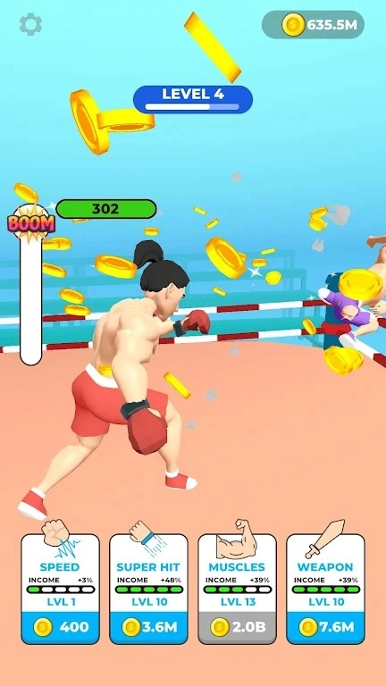 玩家需要快速点击屏幕来操控拳击手出拳,无论是击中沙袋还是对手都能赚取金币,点击的速度越快,获得的收益也就越高。