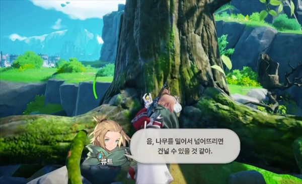 2、把前方的大树推倒后,就能顺着这棵树一直往前走了。