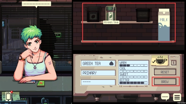 从架子上挑选所需的材料,着手制作咖啡,待制作完成后,点击【BREW】按钮。
