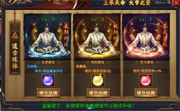 提升太阴、纯阳、苍天等属性体魄,可分别增强生命、攻击、防御等属性。