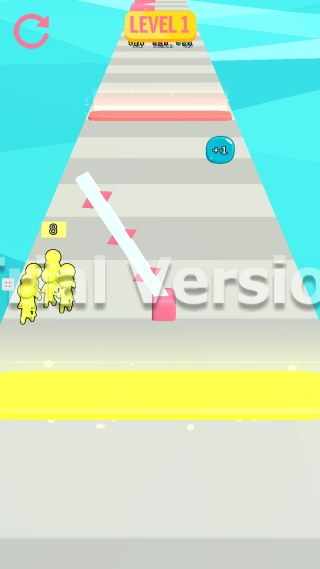 通过触摸屏幕的左右两侧,能够操控果冻人进行横向移动,以此避开障碍物。要尽可能多地收集赛道上的各类道具,从而增强自身队伍的整体实力。